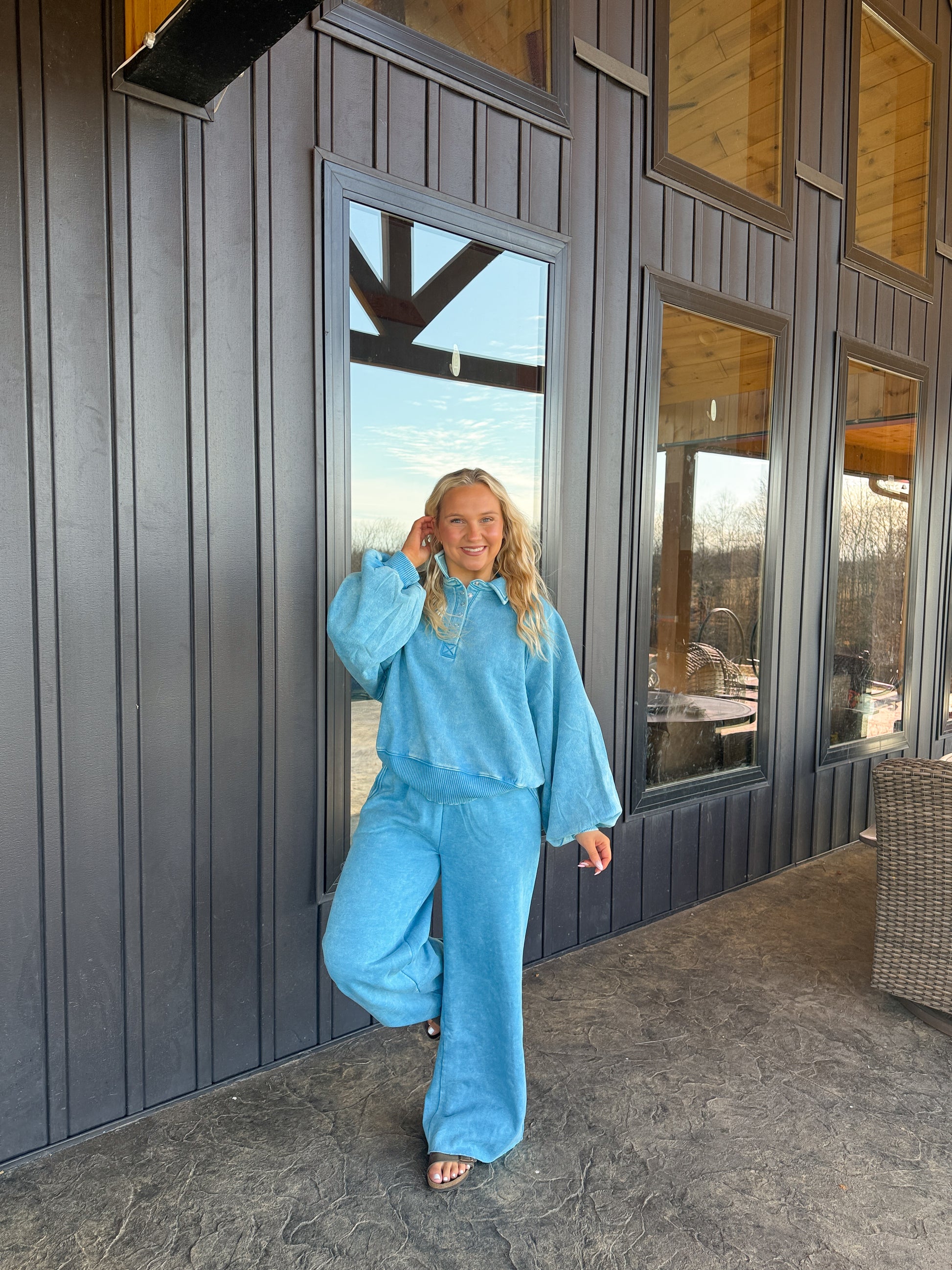 158. Acid Wash Fleece Button Pullover