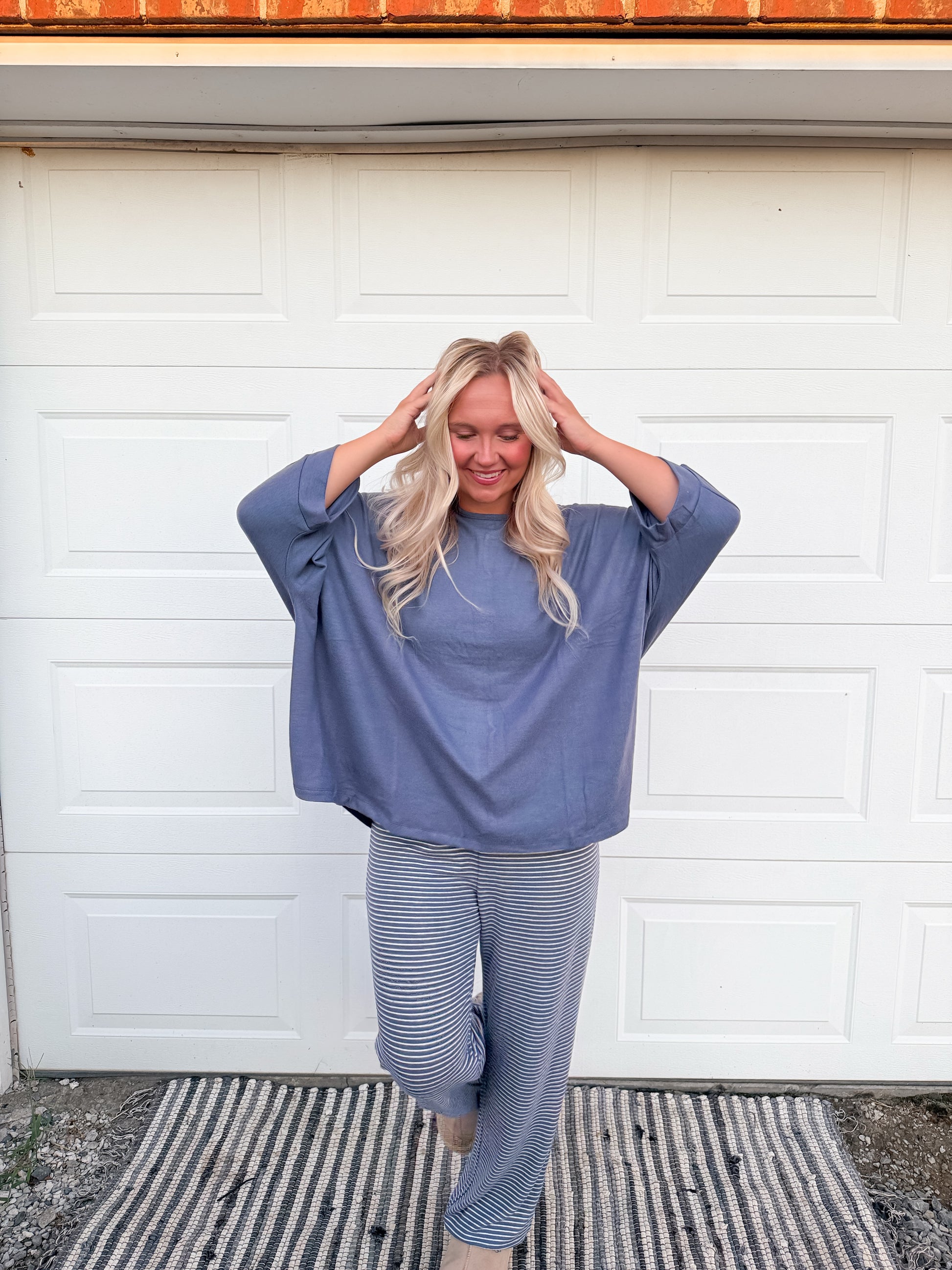 This top features a relaxed batwing silhouette with 3/4 sleeves and a round neckline for easy, oversized comfort. Made from soft brushed knit, it feels cozy and lightweight. Distinctive center back and back yoke seams add subtle structure and crafted detail. Pair with jeans for brunch or layer under a jacket for cool evenings.