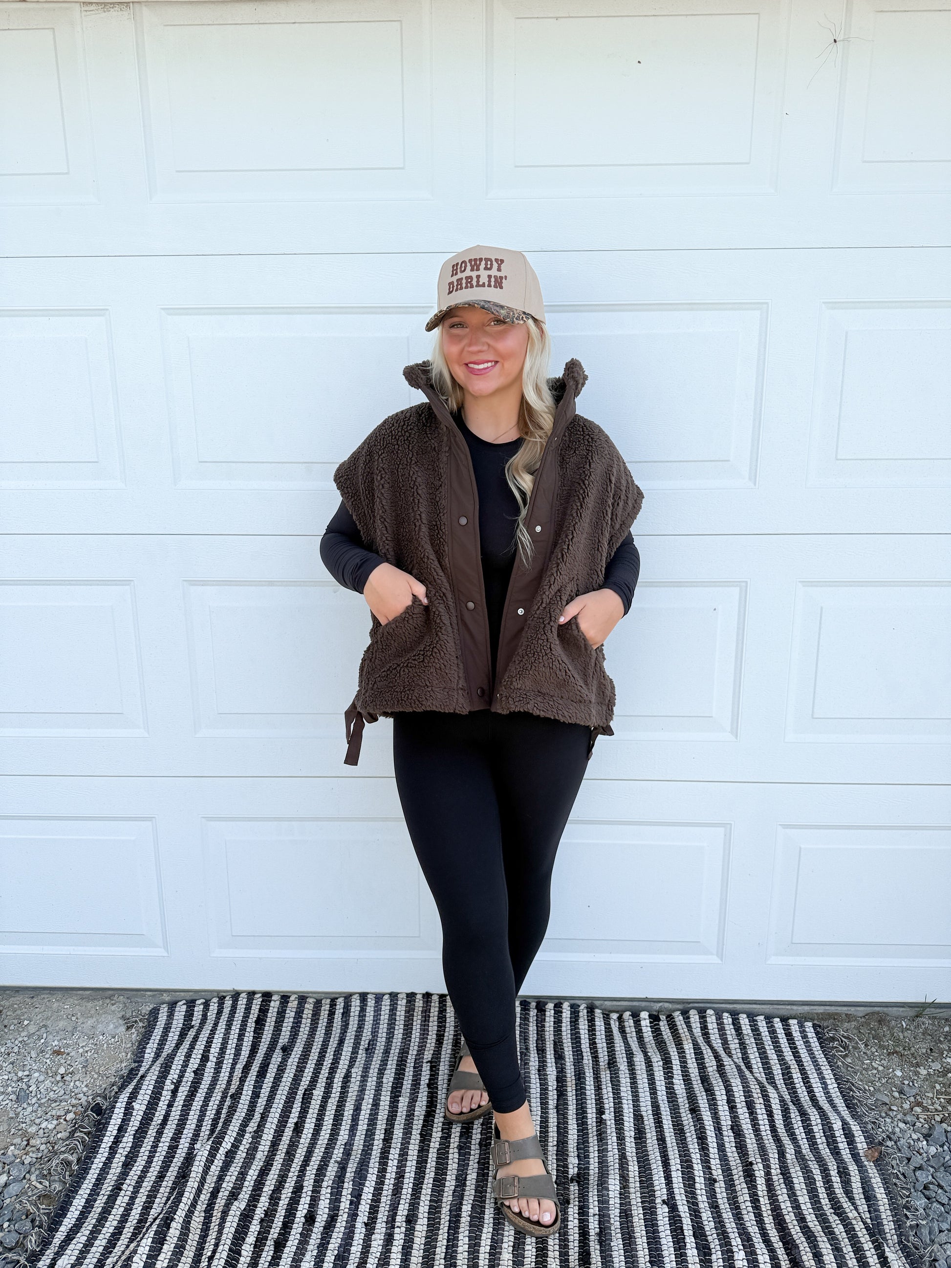 Embrace comfort and style with this sherpa vest jacket, perfect for layering. Its unique functional side tie-ups, offers a snug, adjustable fit. Features a snug mock neck and button down front for easy wear. Ideal for transitioning seasons, pair it with your favorite slim jeans or leggings for a cozy. Elevate your ensemble with this outerwear on a breezy evening out or a casual day in the city.