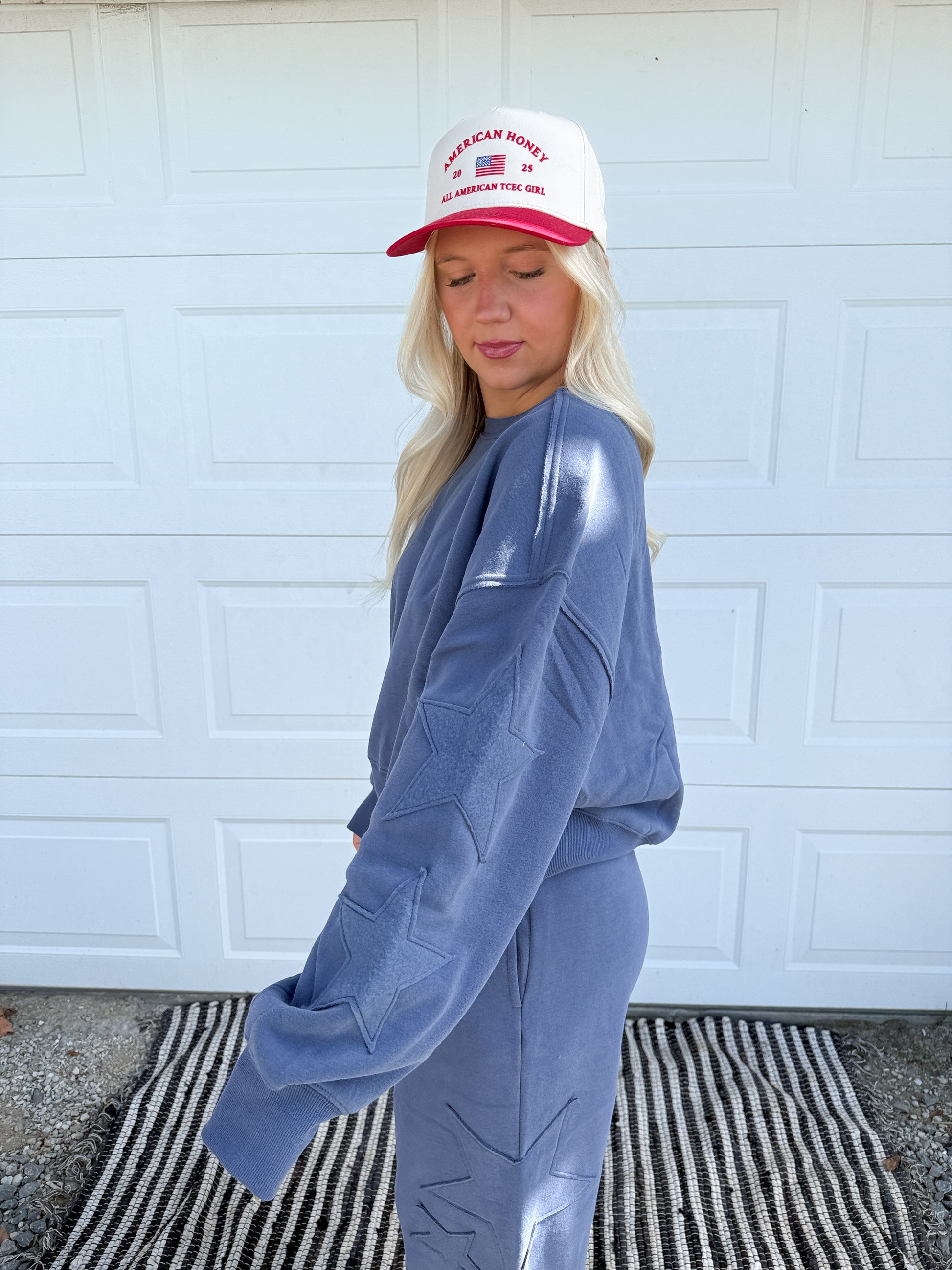 Elevate your casual wardrobe with this unique crewneck sweatshirt, adorned with star patch on the sleeves for a touch of whimsy. The relaxed fit offers unmatched comfort, making it perfect for casual outings or cozy evenings at home. Pair it with your favorite denim or layer it under a structured jacket for a fashion-forward look. Ideal for transitioning seasons, this piece blends style and practicality seamlessly.
