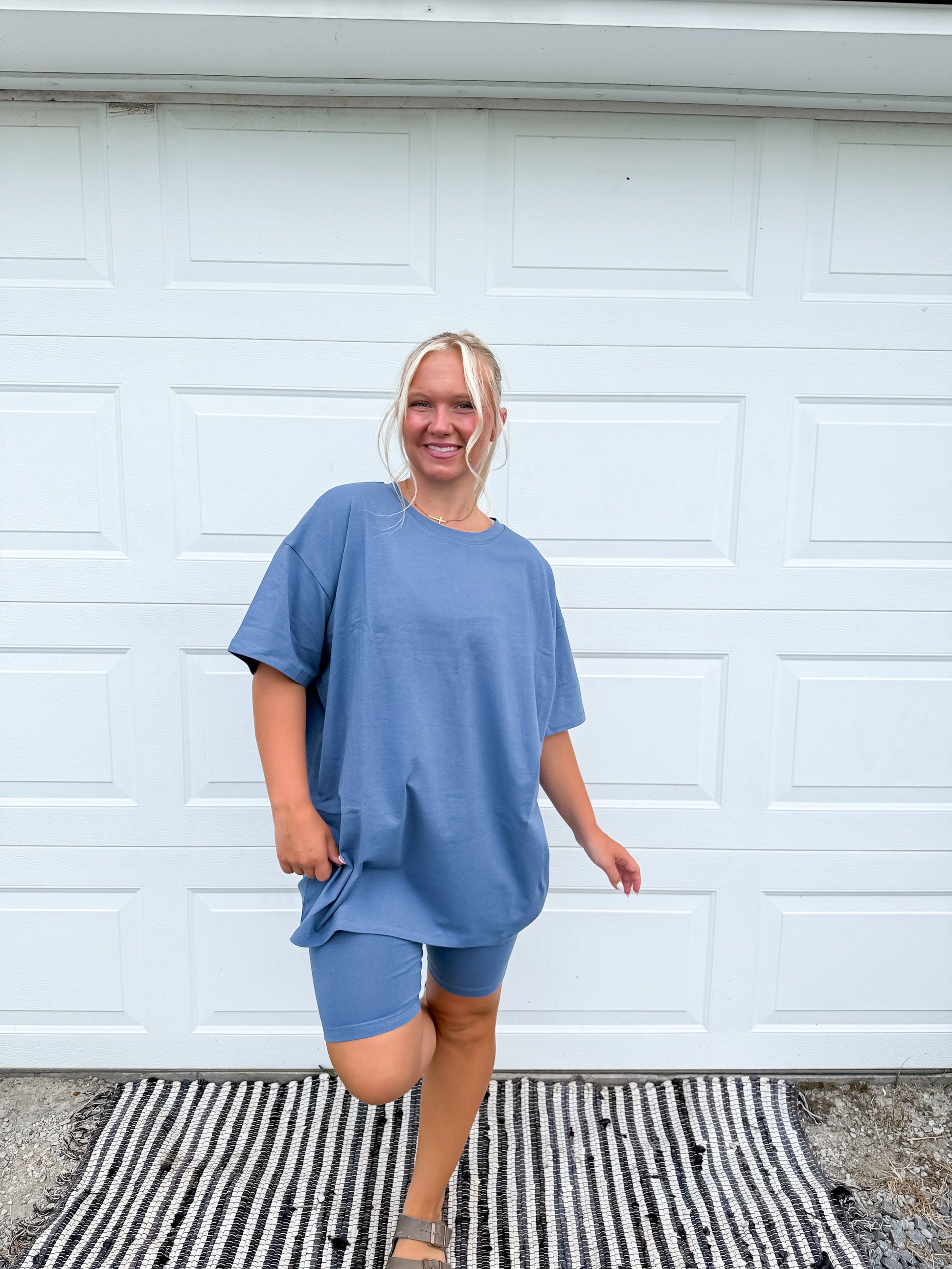 COTTON ROUND NECK TOP & BIKER SHORTS SET