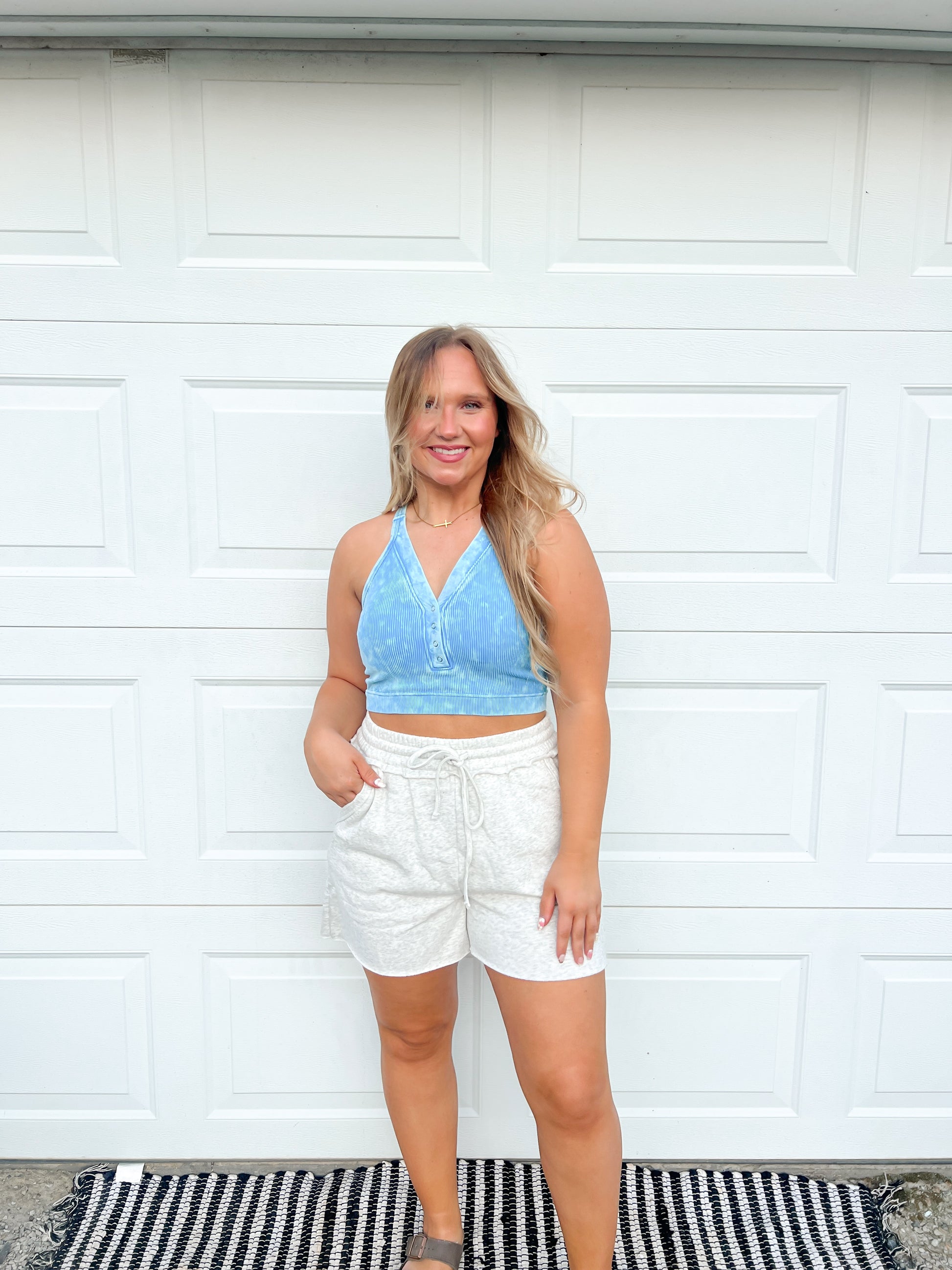 FLEECE RAW HEM SHORTS WITH DRAW STRING